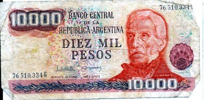 When the change was made from Peso Ley to Peso Argentino, they didn't have the time to have new designs made up. So, they just used the same design but took off four zeroes. Both types of bills were in circulation in 1985, which made life rather interesting when it came to paying for things. |