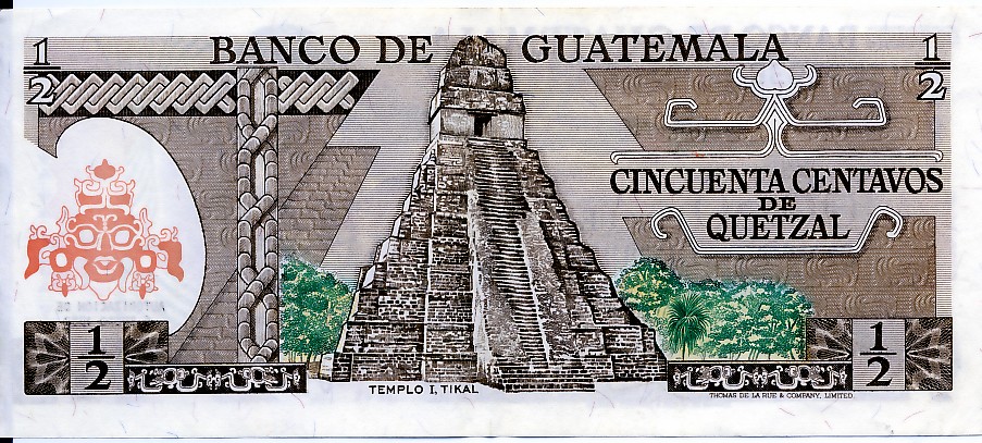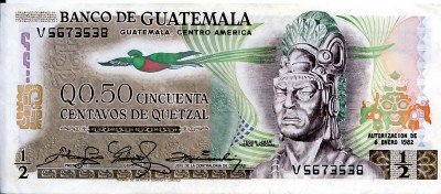 I bet you didn't know that the Guatemalan Quetzal is one of the stronger currencies in Latin America. In the early 1980s the Quetzal was on par with the U.S. dollar - which made this bill worth U.S. 50 cents. Today the exchange rate is about 7 Quetzals to the dollar, which makes it worth about 7 US cents. That makes it worth more than all the above bills combined. |